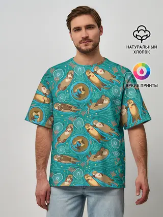 Мужская футболка оверсайз / Весёлые выдры