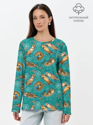 Лонгслив женский. Хлопок / Весёлые выдры