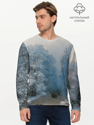Мужской лонгслив базовый / Зимний пейзаж картина маслом