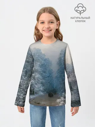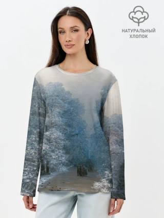Лонгслив женский. Хлопок / Зимний пейзаж картина маслом