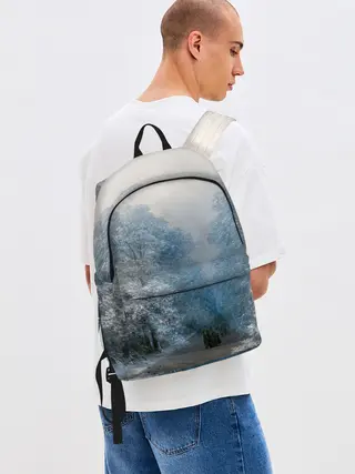 Рюкзак джинсовый / Зимний пейзаж картина маслом