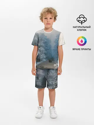 Детская пижама с шортами / Зимний пейзаж картина маслом