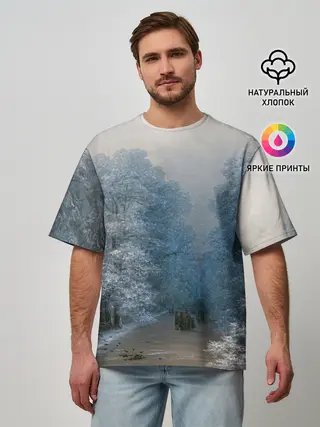 Мужская футболка оверсайз / Зимний пейзаж картина маслом