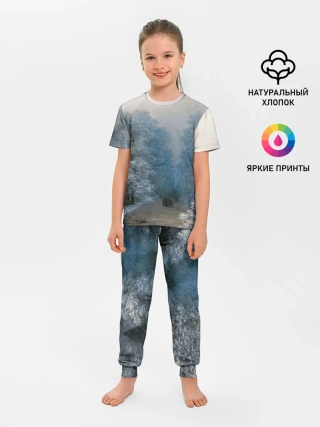 Детская пижама с брюками / Зимний пейзаж картина маслом