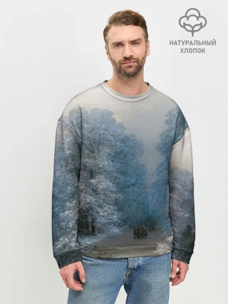 Мужской свитшот базовый / Зимний пейзаж картина маслом