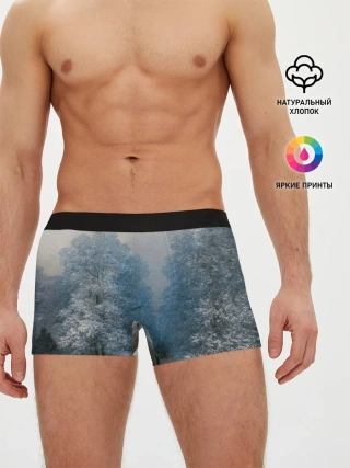 Мужские трусы боксеры / Зимний пейзаж картина маслом