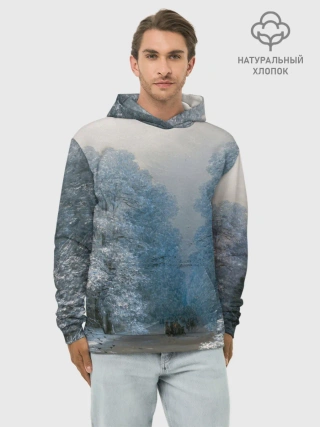 Худи мужской база хлопок / Зимний пейзаж картина маслом