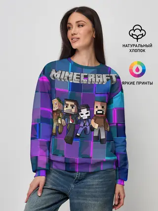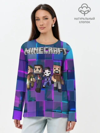Лонгслив женский. Хлопок / Майнкрафт на скиле