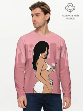 Мужской лонгслив базовый / GTA VC - Девушка с мартини