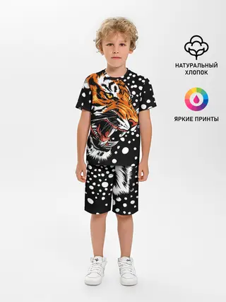 Детская пижама с шортами / Амурский тигр и снегопад