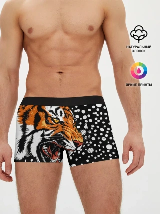 Мужские трусы боксеры / Амурский тигр и снегопад