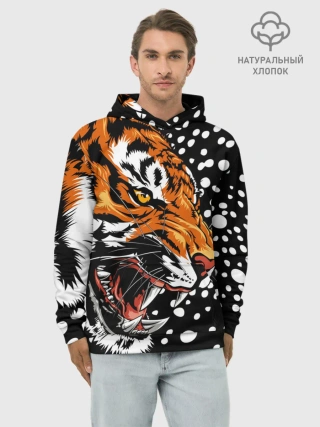 Худи мужской база хлопок / Амурский тигр и снегопад