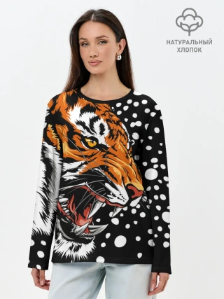 Лонгслив женский. Хлопок / Амурский тигр и снегопад