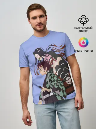 Мужская футболка оверсайз / Tanjirou & Nezuko