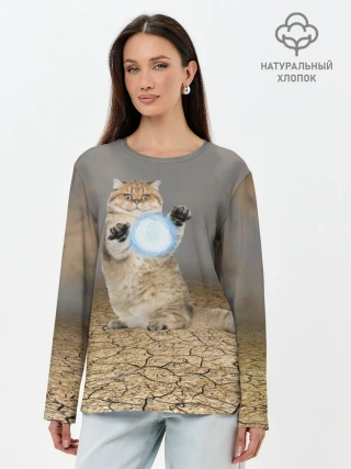 Лонгслив женский. Хлопок / Земляной кошак с расенганом