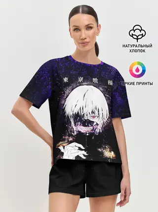 Женская футболка оверсайз / Kaneki Ken фиолетовый верх