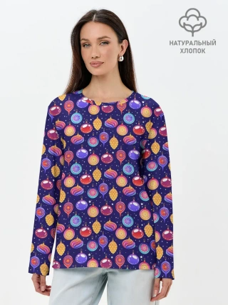 Лонгслив женский. Хлопок / Новогодние Ёлочные Украшения