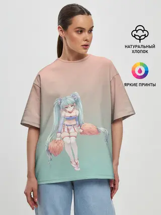 Женская футболка оверсайз / Чирлидерша с помпонами