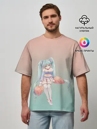 Мужская футболка оверсайз / Чирлидерша с помпонами