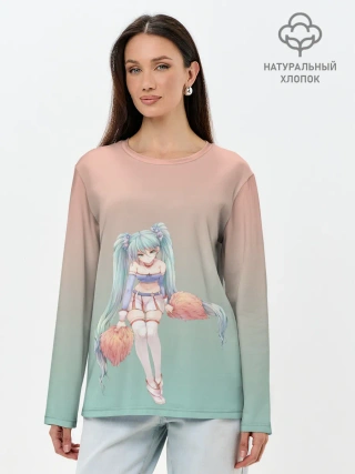 Лонгслив женский. Хлопок / Чирлидерша с помпонами