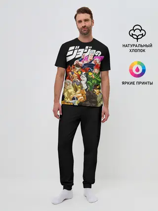 Мужская пижама с брюками / Jojo герои на черном