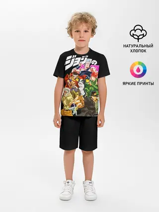 Детская пижама с шортами / Jojo герои на черном