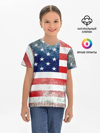 Детская базовая футболка / Америка Флаг