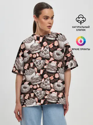 Женская футболка оверсайз / Фастфуд / Fast food