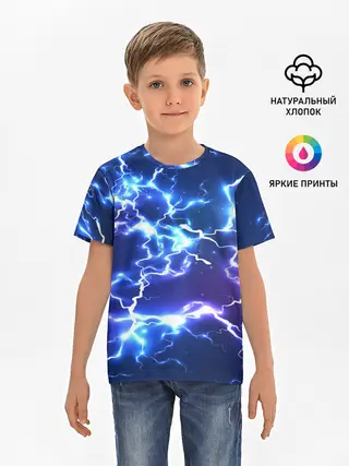 Детская базовая футболка / СВЕТЯЩИЕСЯ МОЛНИИ | NEON FLASH