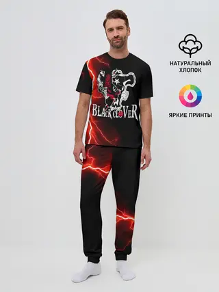 Мужская пижама с брюками / Черные быки | Черный Клевер