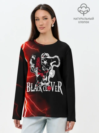 Лонгслив женский. Хлопок / Черные быки | Черный Клевер