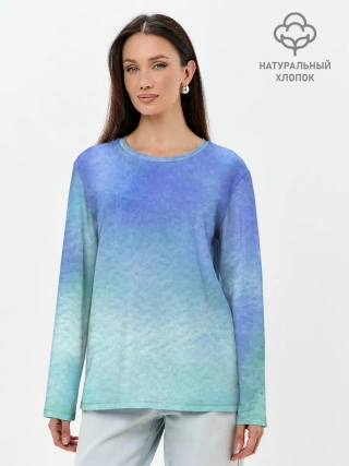 Лонгслив женский. Хлопок / Небесная синева