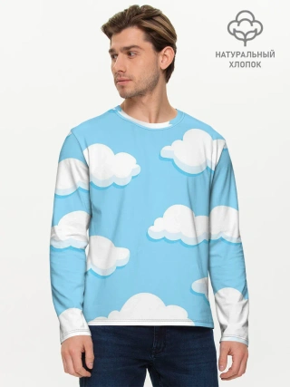 Мужской лонгслив базовый / Белые облака