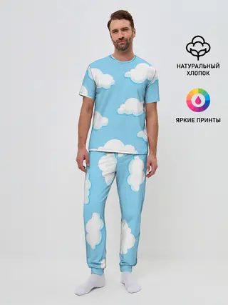 Мужская пижама с брюками / Белые облака
