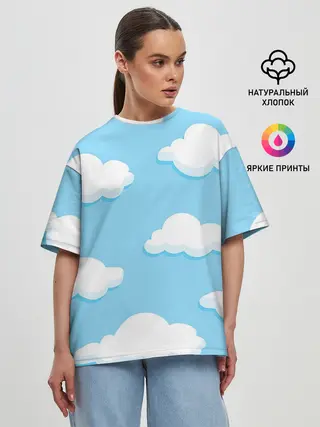 Женская футболка оверсайз / Белые облака