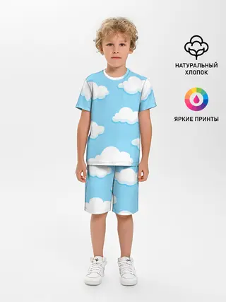 Детская пижама с шортами / Белые облака