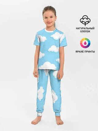 Детская пижама с брюками / Белые облака