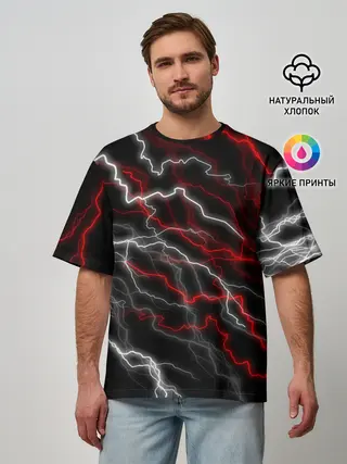 Мужская футболка оверсайз / МОЛНИЯ.