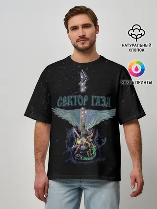 Мужская футболка оверсайз / Сектор Газа крылатая гитара