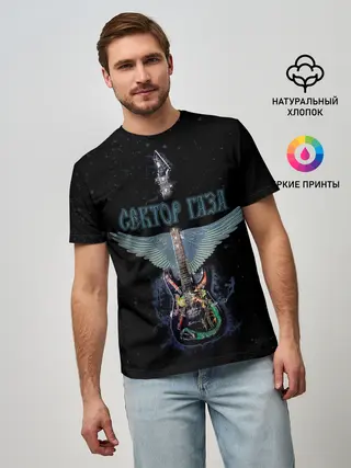 Мужская базовая футболка / Сектор Газа крылатая гитара