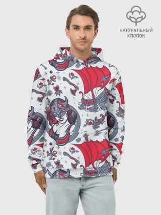 Мужская футболка оверсайз / Корабли и девушка викинг