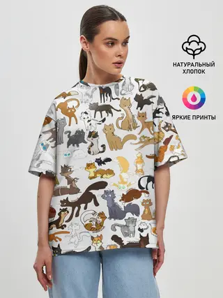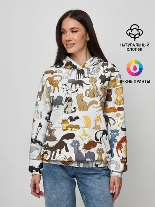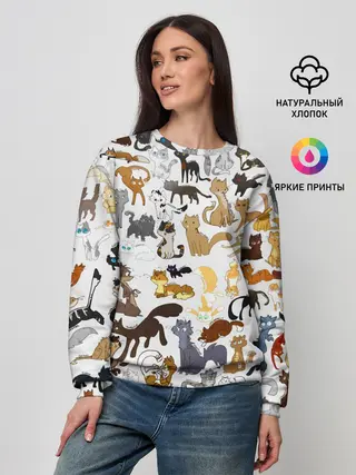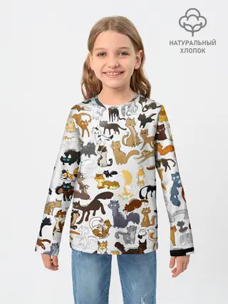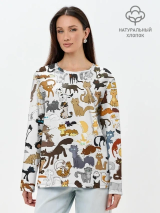 Лонгслив женский. Хлопок / Котоколлаж 01