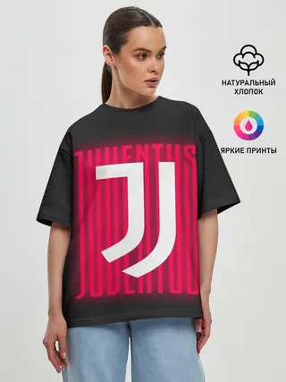 Женская футболка оверсайз / JUVENTUS / ЮВЕНТУС / НЕОН