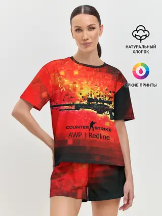 Женская футболка оверсайз / cs go:AWP:Red Line