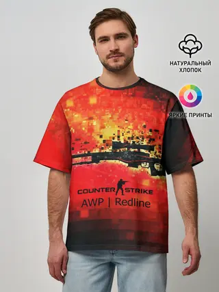 Мужская футболка оверсайз / cs go:AWP:Red Line