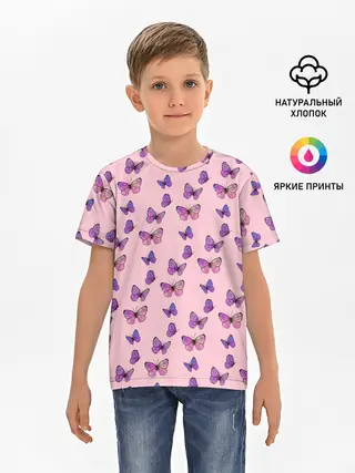 Детская базовая футболка / Бабочки фиолетовые | 2