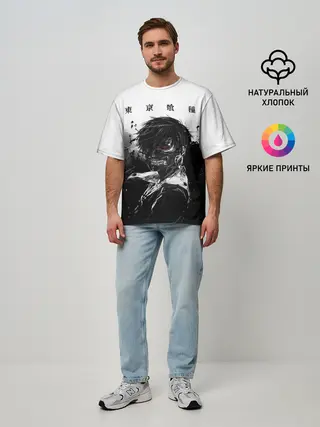 Мужская футболка оверсайз / Канеки Кен черно-белый
