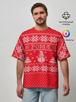 Мужская футболка оверсайз / Новогодний Рома