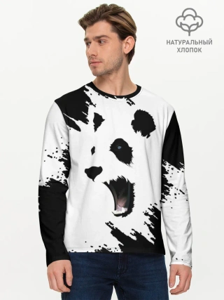 Мужской лонгслив базовый / Панда | ЧБ