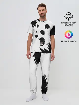 Мужская пижама с брюками / Панда | ЧБ